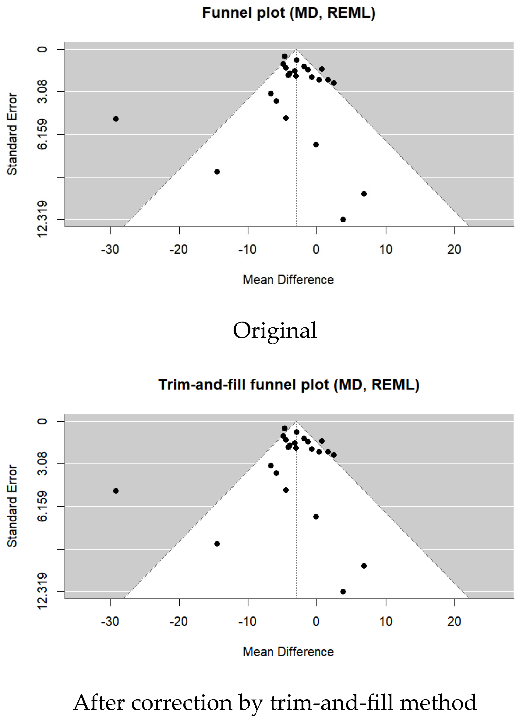 | Overall-REML | 6 | −0.70∼−0.05 | 0% | 0 | 3.96 | 0.02 |