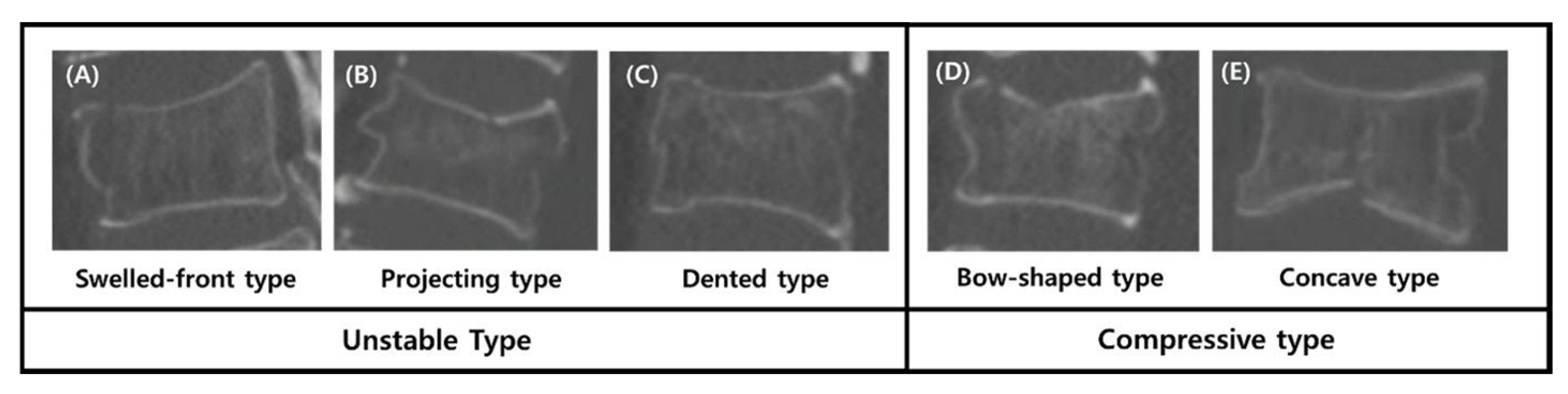 10]. Consistent with Sugita et al.’s original observations, we identified the ‘Unstable type’ (swelled, projecting, and dented) as a major risk factor for rapid vertebral collapse. While previous studies have demonstrated that TPTD can accelerate fracture healing and promote union in osteoporotic vertebral fractures [