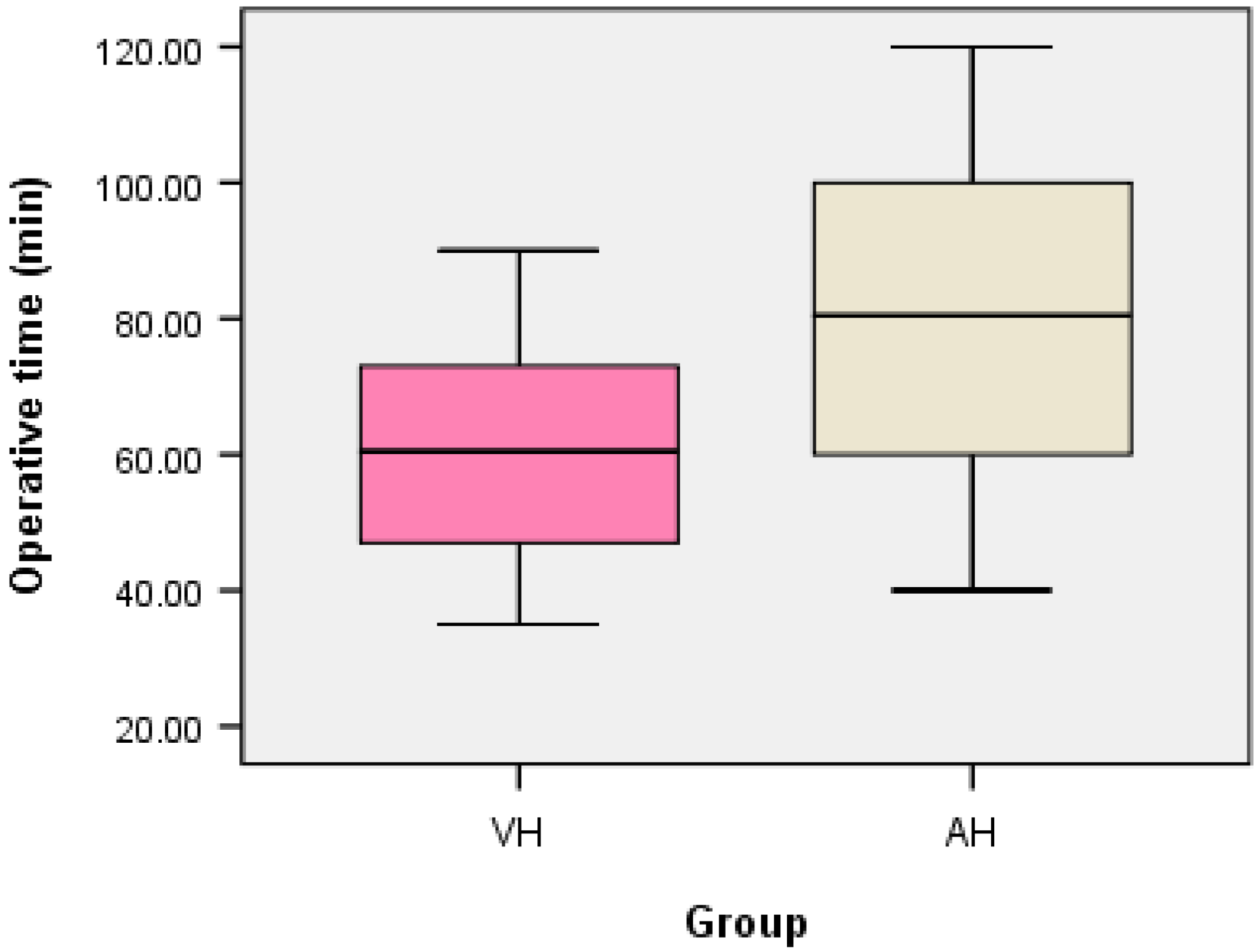 | Operative time (min) | ||