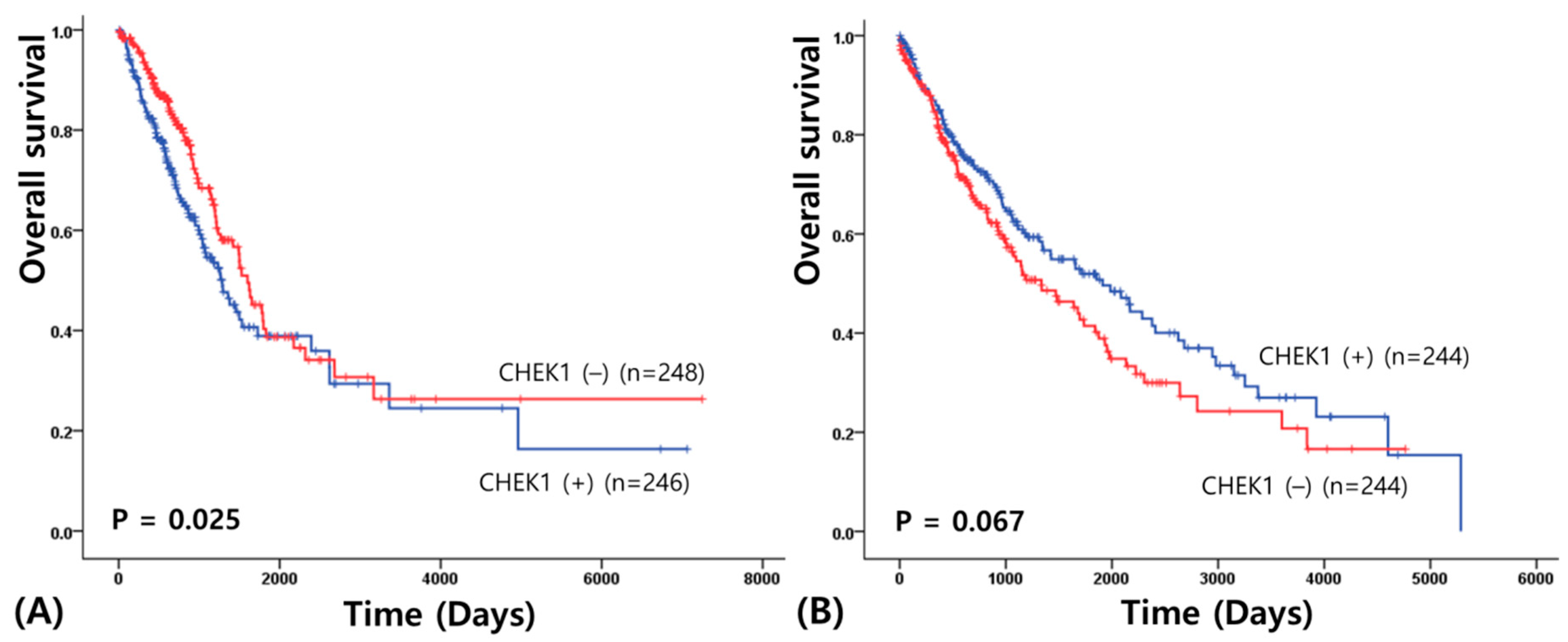 3.1. Association of CHEK1 Expression with Clinicopathological Features in NSCLC