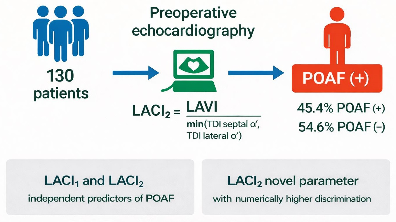 - Both LACI1 and LACI2—of which LACI2 has not been previously reported in the literature—were found to be independent and significant predictors of POAF after isolated CABG.
