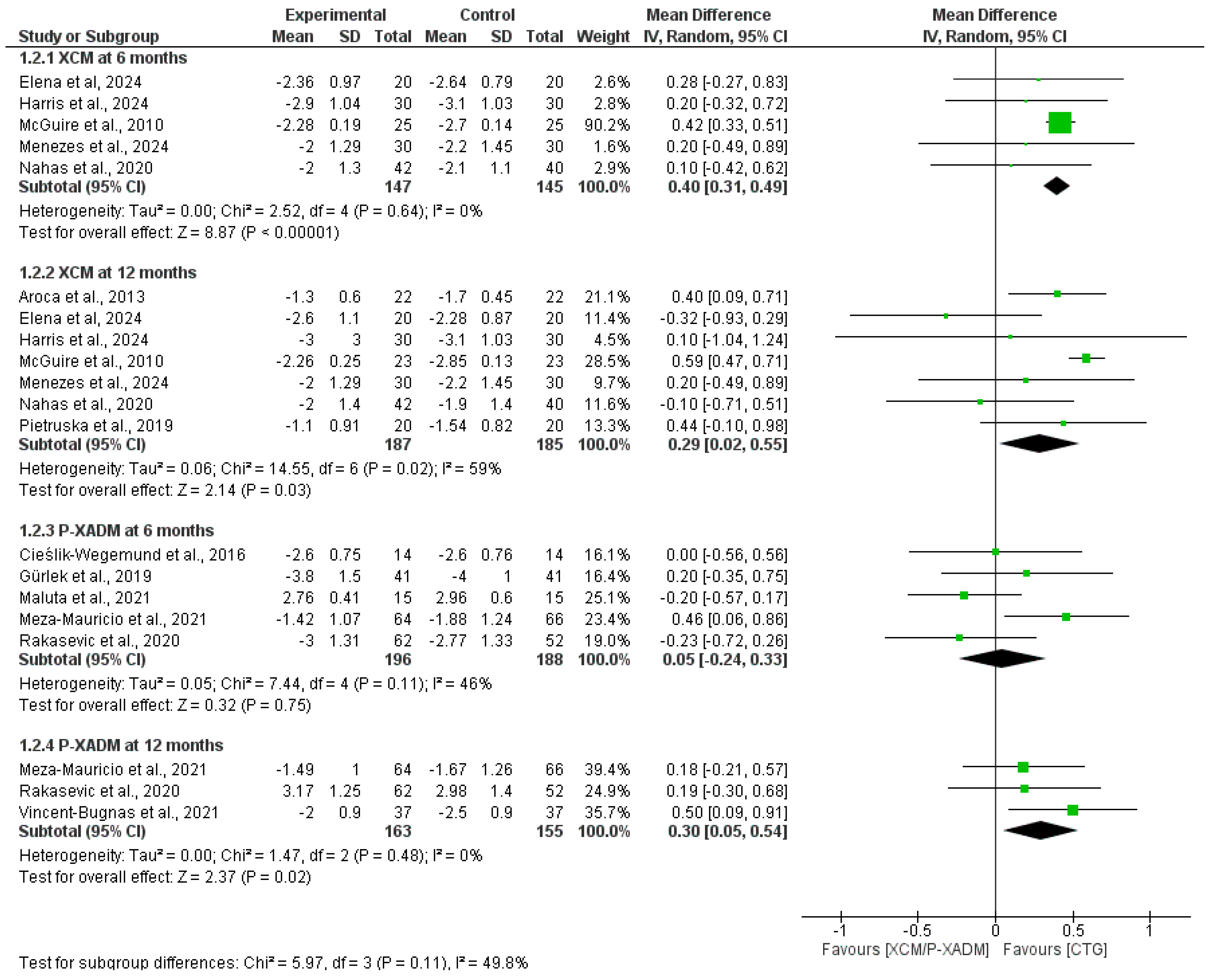 | Pietruska et al., 2019 [25] | XCM | 20 | - | - | - | - | 1.38 (0.68) | - | 3.52 (0.75) | 1.47 (0.46) |