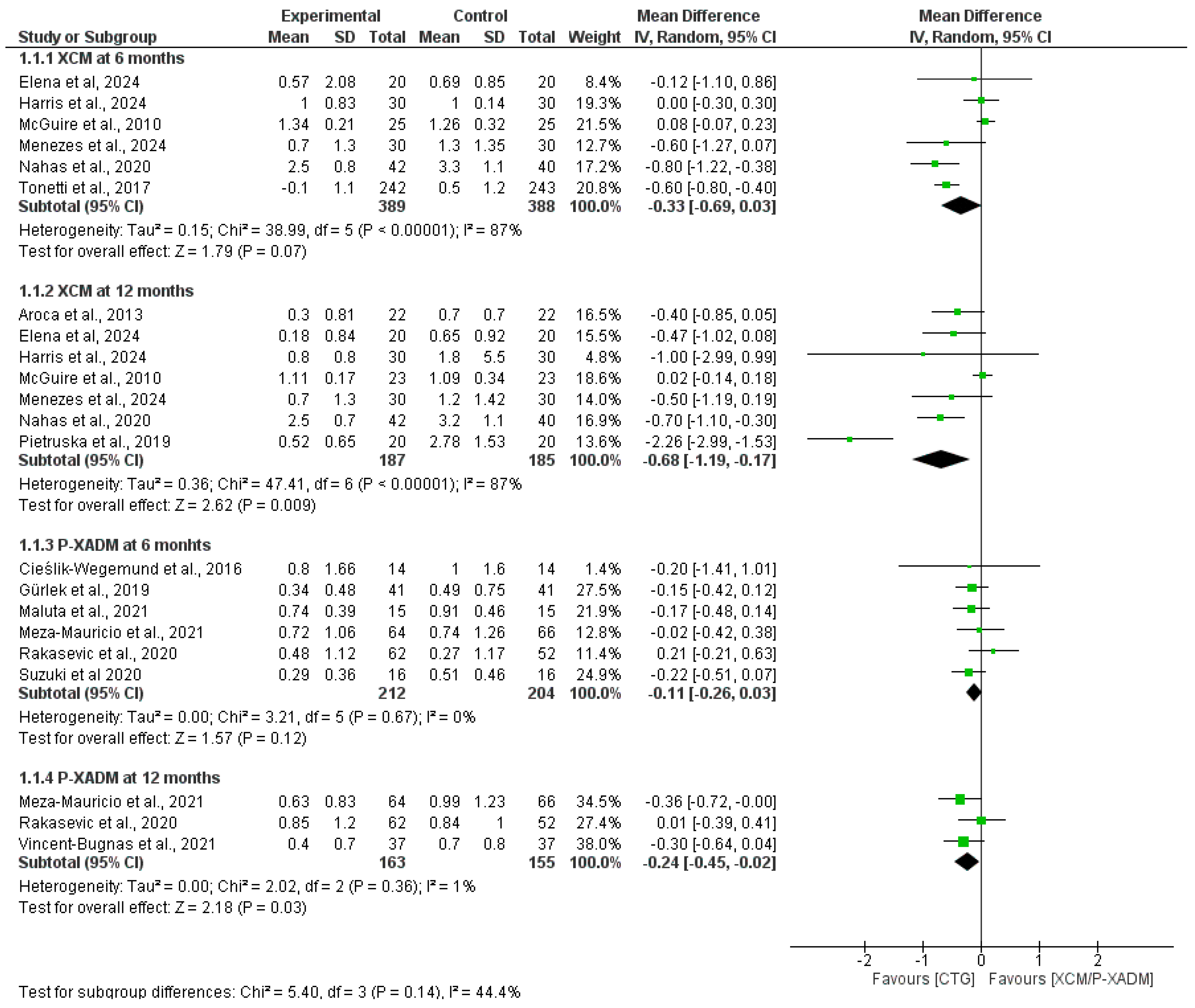 | Elena et al., 2024 [20] | XCM | 10 | 58 | 48.8 ± 10.4 | 7 (70%) | 3 (30%) | 1.78 ± 1.24 | 1.09 ± 0.28 | 4.88 ± 1.12 | NR |