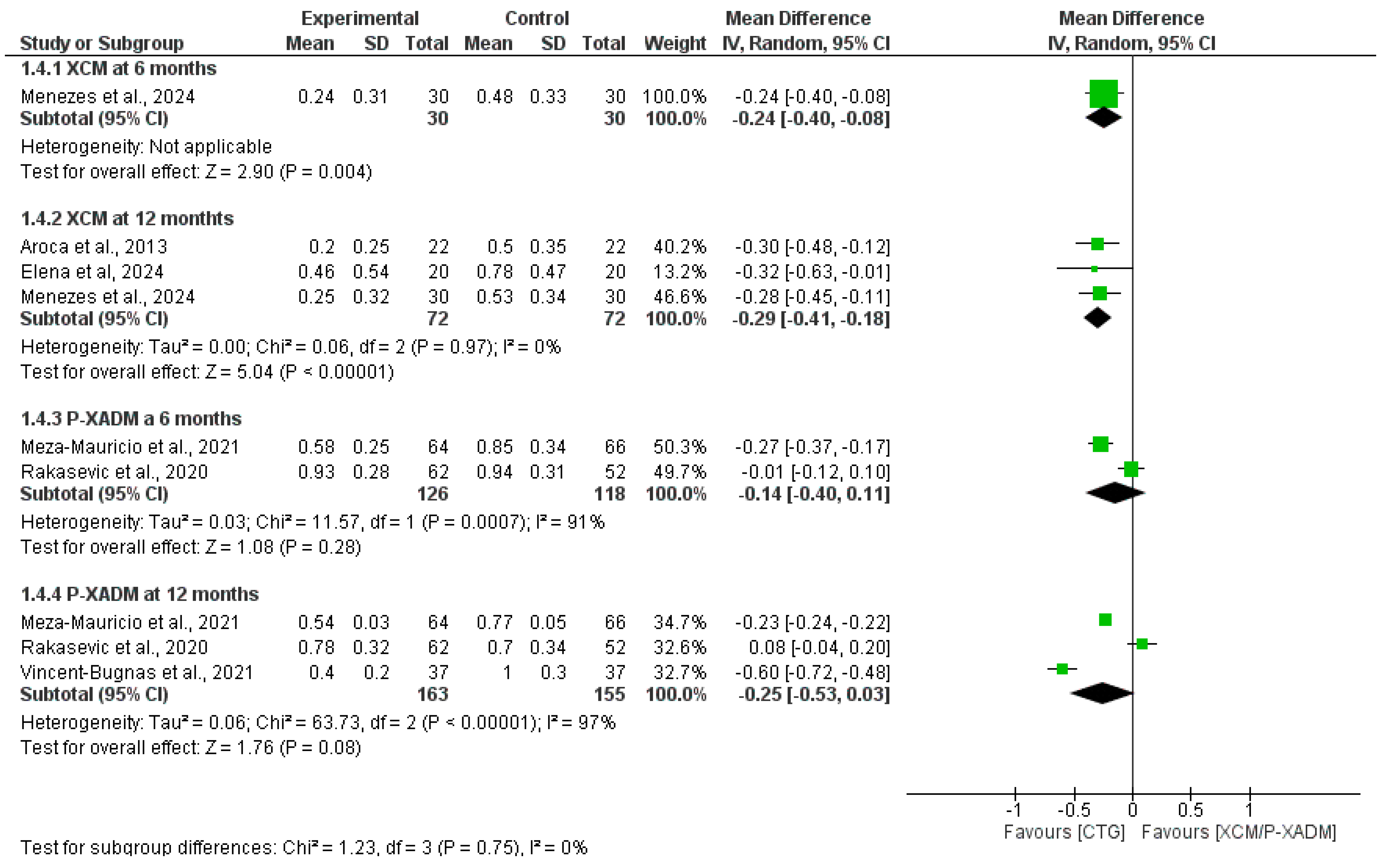 | Menezes et al., 2024 [23] | XCM | 30 | 30.3 ± 6 | 15 (50%) | 15 (50%) | - | 3.3 ± 1.3 | 3.37 ± 1.07 | 3.9 ± 1.29 | 2 ± 0.41 |