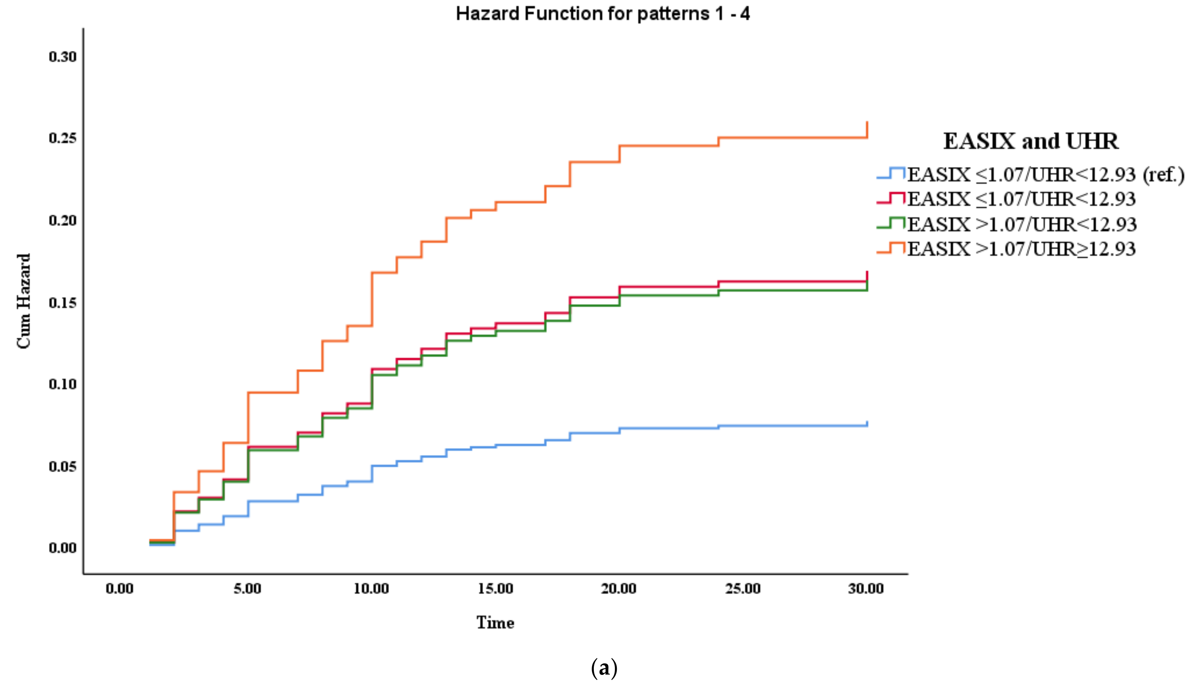 | EASIX/UHR (Model 1) | Deaths/Total (%) | Crude HR (95% CI) | pValue | Adjusted HR (95% CI) | p Value |