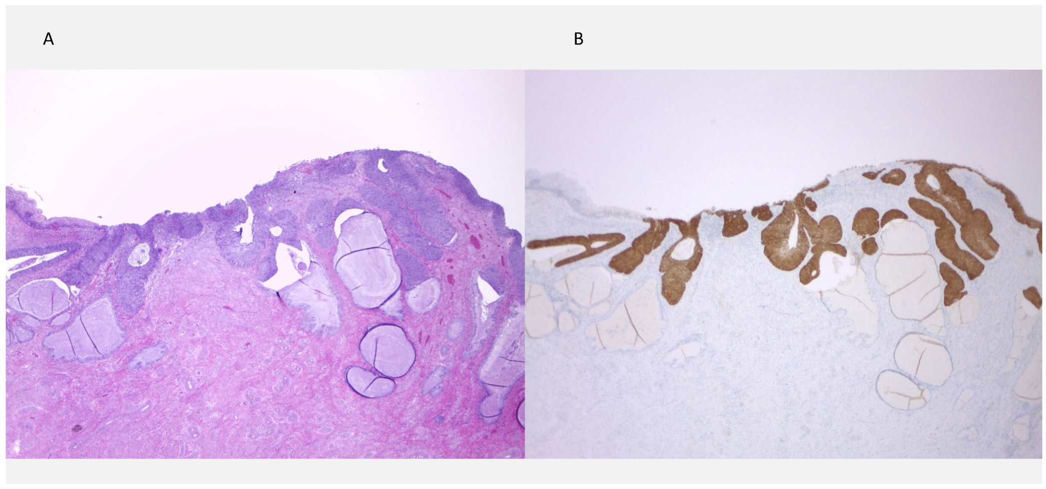 - Patient SN1, age 41, underwent same-day colposcopy and LEEP, which demonstrated CIN3 involving all quadrants with positive ectocervical and endocervical margins. p16 staining was strongly positive (Figure 2). At the 6-month follow-up, cytology again revealed HSIL, prompting a repeat colposcopy and colposcopic-directed biopsy (CDB), which confirmed the presence of HSIL. She subsequently underwent a second LEEP, which again revealed HSIL with positive surgical margins. She continued surveillance with liquid-based cytology every 6 months, and her most recent cotest in August 2025 was negative.