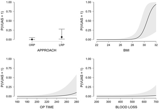 In the crude model evaluating surgical approach alone (Model 1), laparoscopic radical prostatectomy was associated with a lower odd of VUAS compared with open surgery (odds ratio [OR] 0.33, 95% confidence interval [CI] 0.10–1.06); however, this association did not reach statistical significance (p = 0.063) (Table 2).