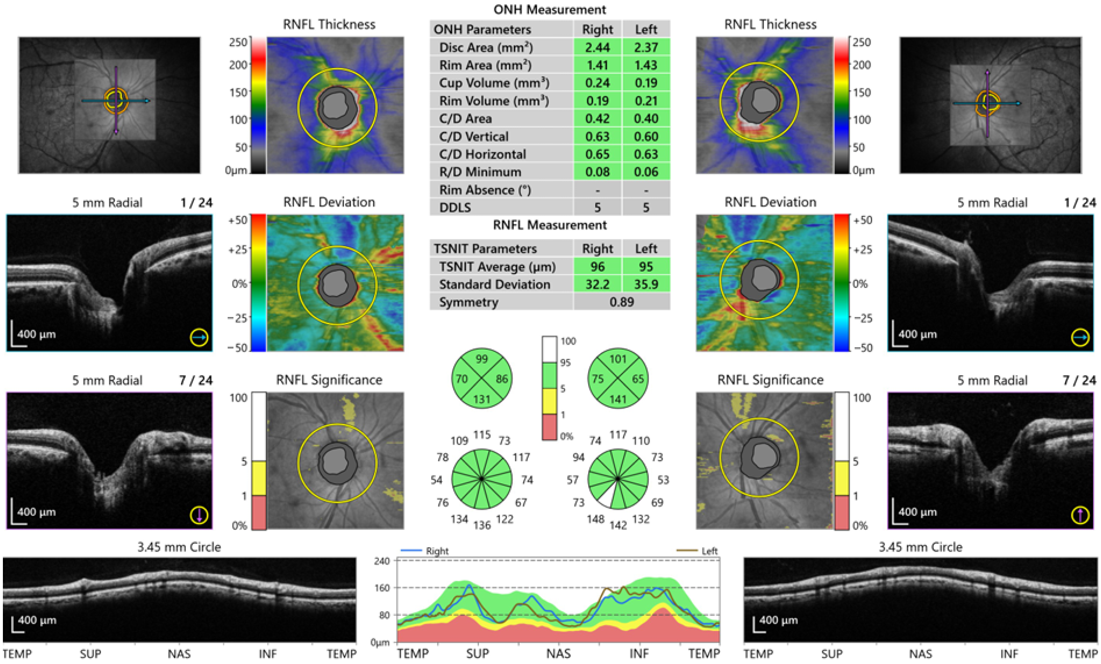 | RNFL inferior, Mean ± SD | 73.2 ± 8.4 | 74.7 ± 11.8 | 0.566 * |
