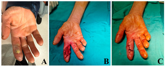 - Hausman, M.R.; Lisser, S.P. Hand infections. Orthop. Clin. N. Am. 1992, 23, 171–185. [Google Scholar] [CrossRef]
