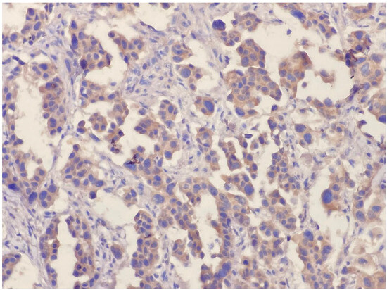 When selecting sections for immunohistochemical analysis, areas with the greatest number of tumor cells and no necrosis were preferred. Sections 4 microns thick were cut from formalin-fixed, paraffin-embedded tissue processed with 10% formaldehyde fixation and mounted onto poly-L-lysine coated slides. The HER-3 antibody (Huabio, clone PD00-44, Woburn, MA, USA) was used at a 1:2000 dilution. Antigen retrieval was performed using ER2 buffer with an incubation time of 20 min. Staining was performed using the streptavidin–peroxidase method with DAB substrate for visualization. The Leica Bond Max Automated Immunohistochemical Staining Device (Leica Microsystems, Berlin, Germany) was used for immunohistochemical staining. Stained slides were examined under an Olympus BX51 model microscope (Olympus Corporation, Tokio, Japan).
