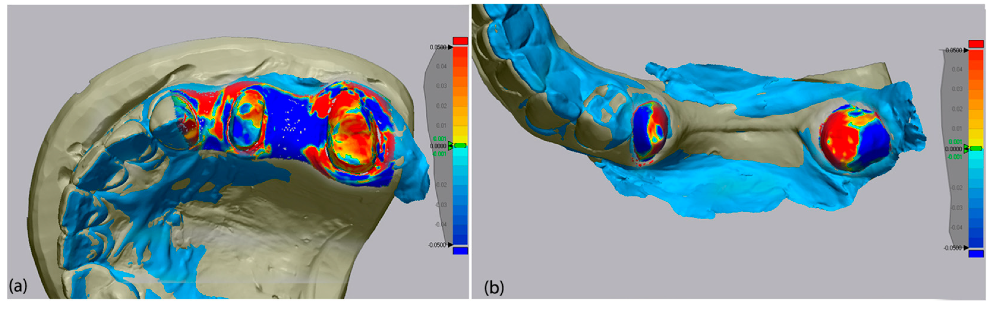 4.1. Accuracy in Maxillary and Mandibular Scans