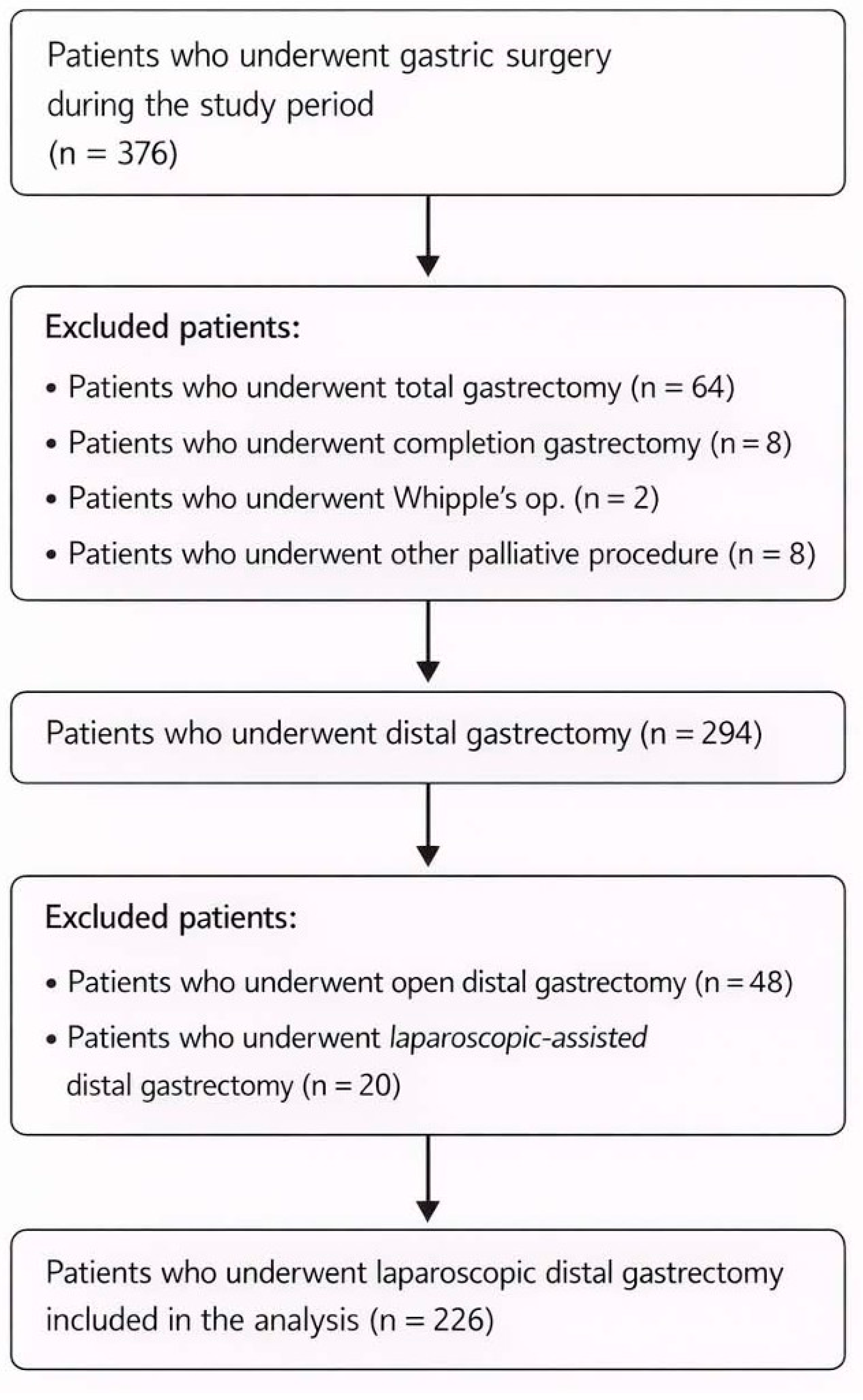 - Kim, H.G.; Kim, D.Y.; Jeong, O. Transition from Conventional to Reduced-Port Laparoscopic Gastrectomy to Treat Gastric Carcinoma: A Single Surgeon’s Experience from a Small-Volume Center. J. Gastric Cancer 2018, 18, 172–181. [Google Scholar] [CrossRef]