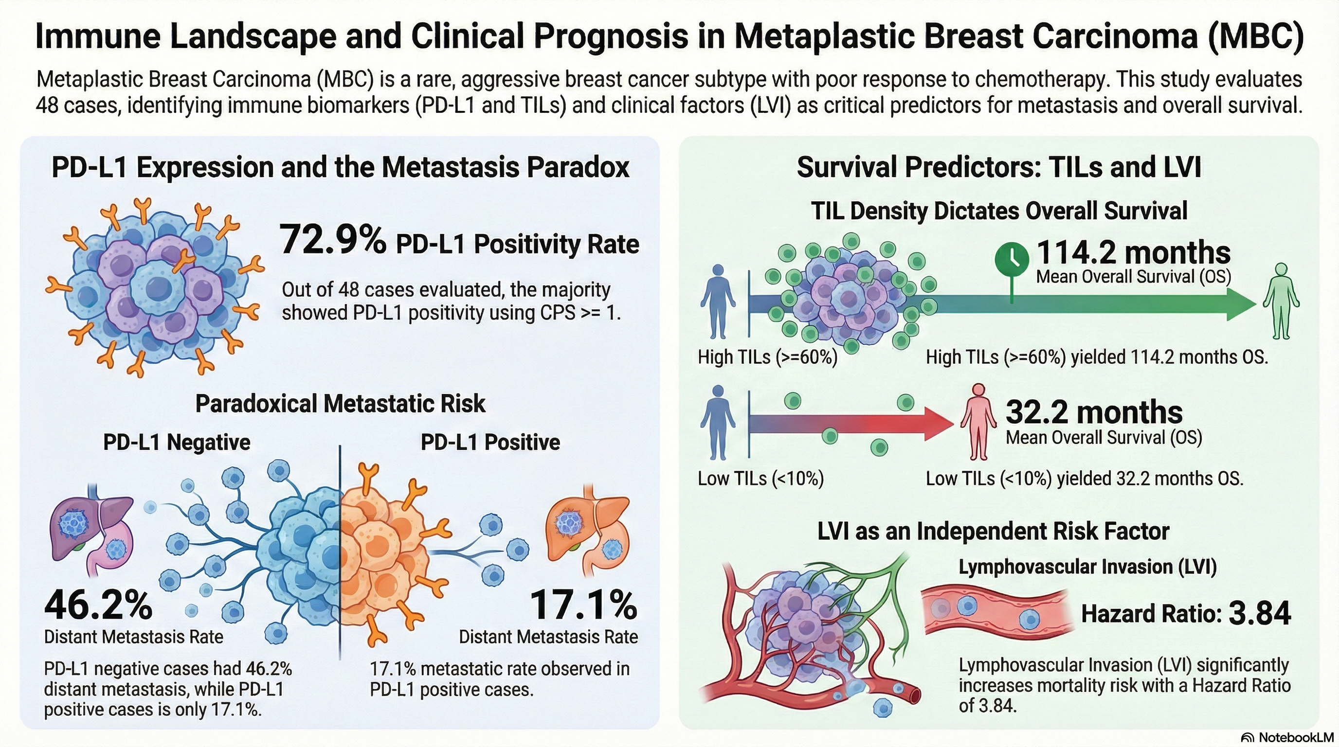 Ultimately, prospective trials stratified by PD-L1 and TIL density are essential to confirm the predictive utility of these markers. Developing composite signatures that integrate immune biomarkers with genomic data will be the next step in optimizing outcomes for this challenging malignancy. As we refine our understanding of the MBC microenvironment, this integrated approach promises to enhance both prognostic precision and therapeutic decision-making.