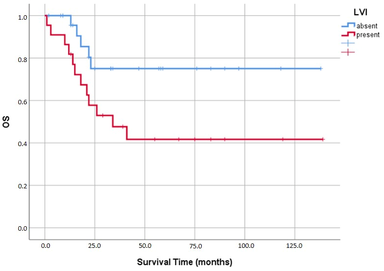 LVI was present in 45.8% (22/48) of our cohort and was significantly associated with mortality (