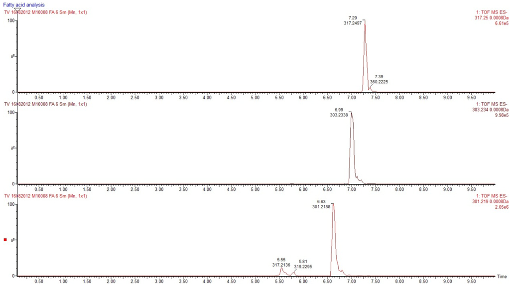 | 22:5 (3 isomers) | 330.2640 | 31588 + 4406 + 4295 | 7.95 |
