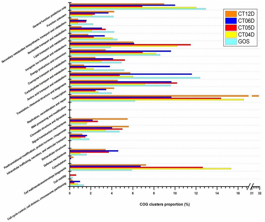 Clusters of Orthologous Groups (COG) distributions of prokaryotic metagenomic libraries.