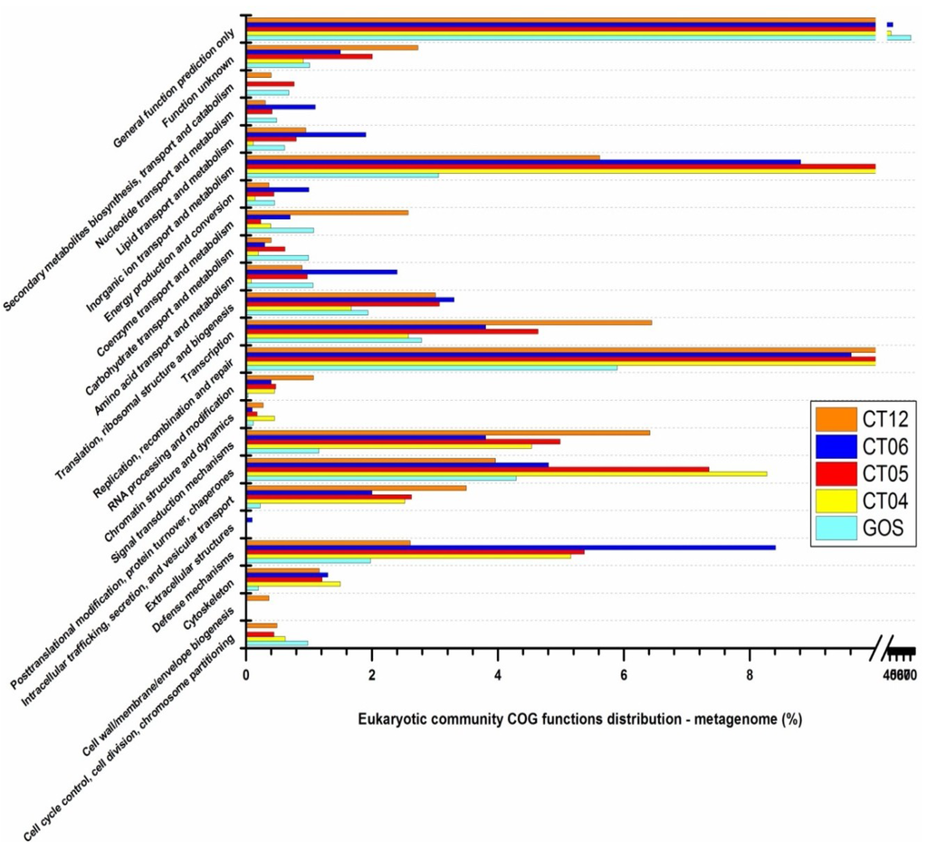COG distributions of eukaryotic metatranscriptomic libraries.