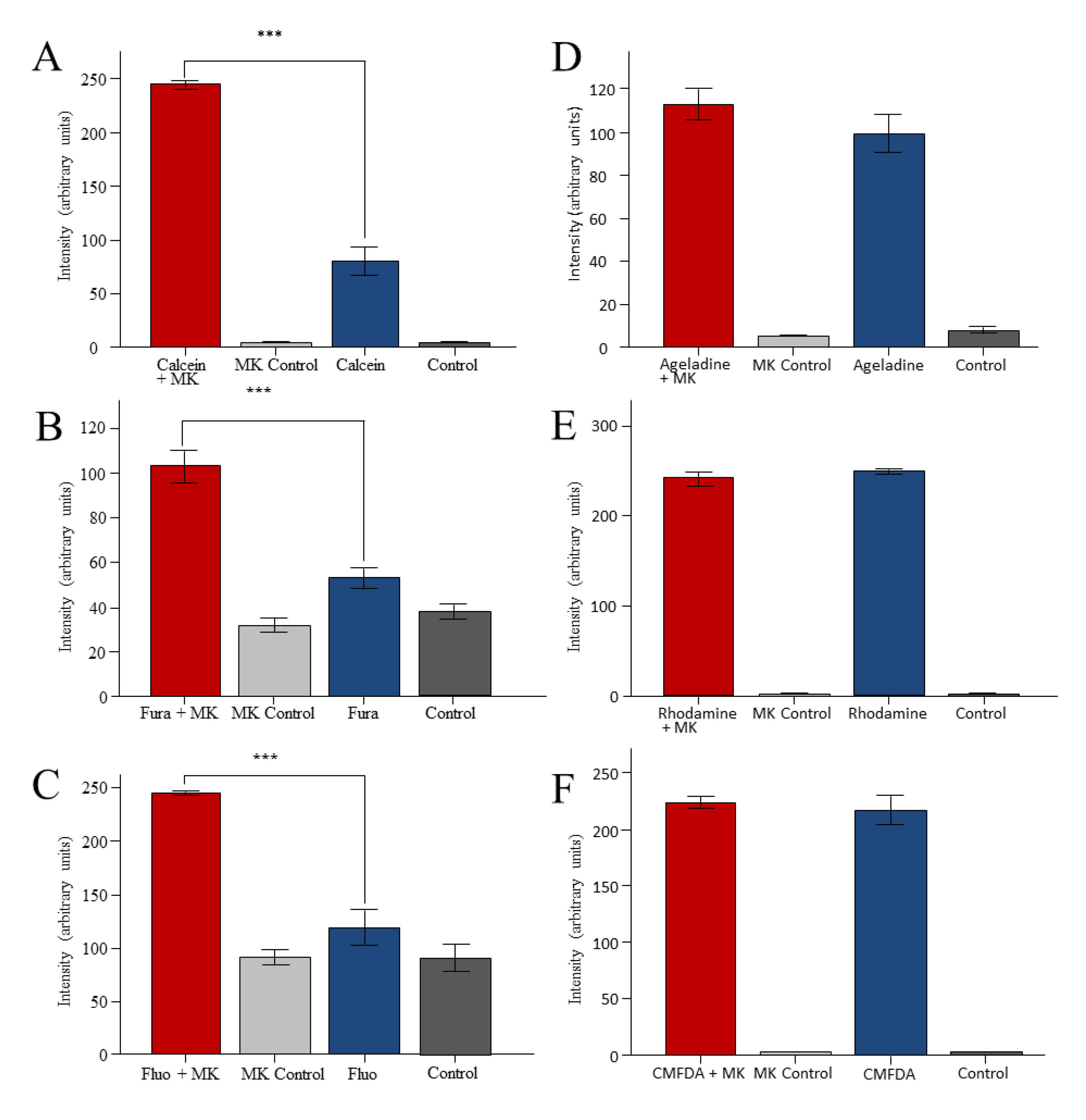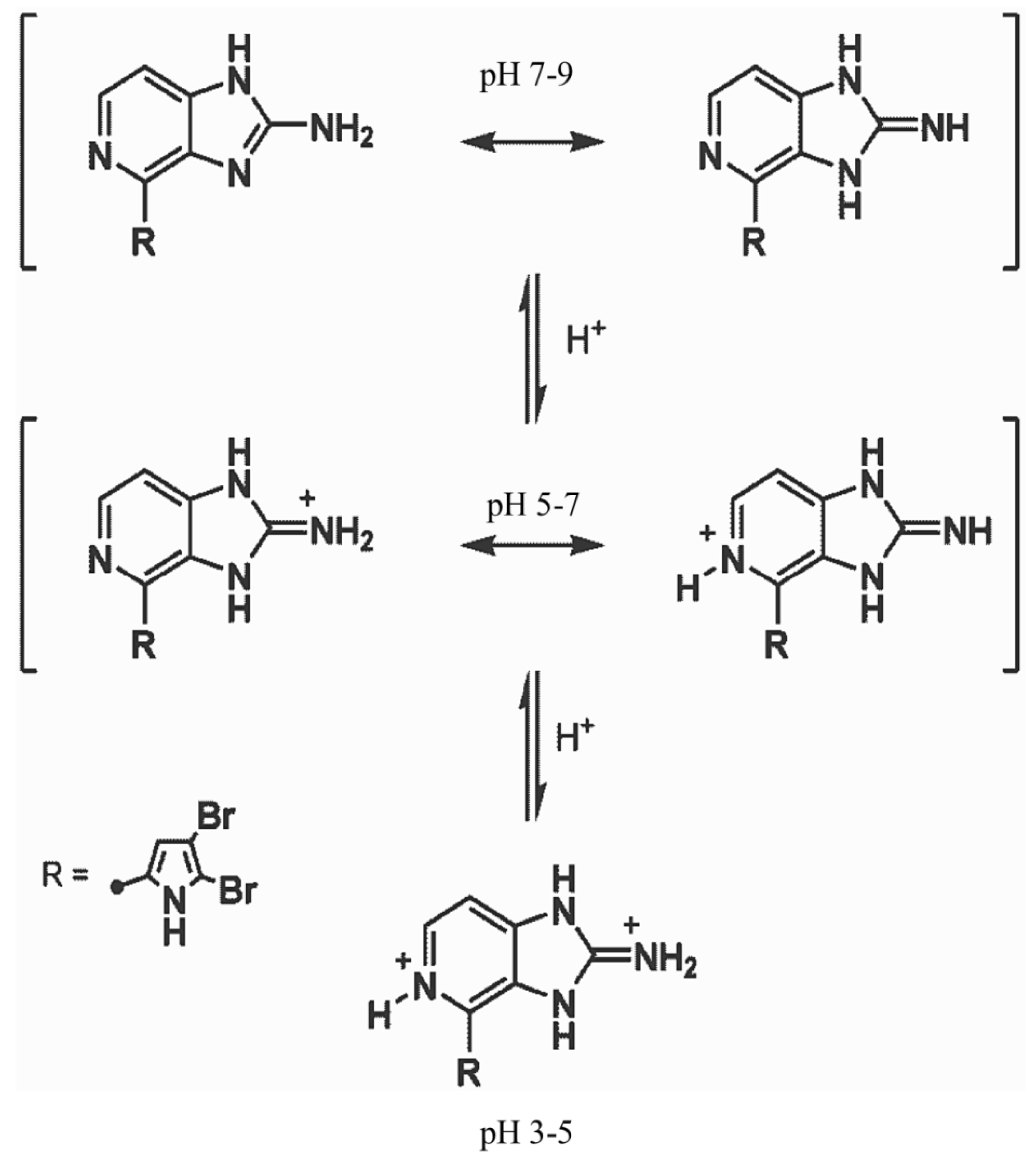 - Bickmeyer, U.; Grube, A.; Klings, K.W.; Köck, M. Ageladine A, a pyrrole-imidazole alkaloid from marine sponges, is a pH sensitive membrane permeable dye. [CrossRef]