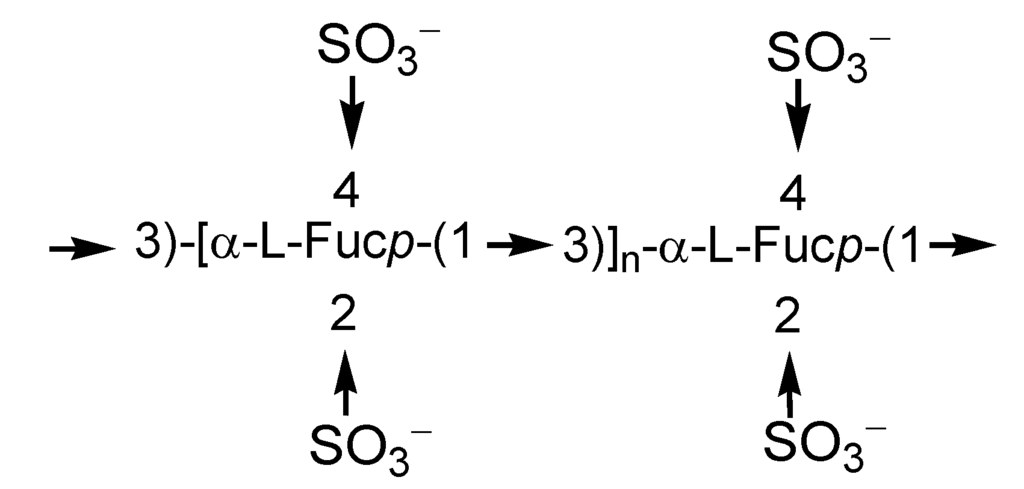 Some brown algae species contain other fucose-embracing heteropolysaccharides such as rhamnofucanes, uronofucanes, etc. For example, the main structure of the fucoglucuronomannan from Kjellmaniella crassifolia is [-4-d-GlcpUAβ1-2(l-Fucp(3-O-sulfate)α1-3)d-Manpα1-]n [22]. Uronofucanes are often named as U-fucoidans.