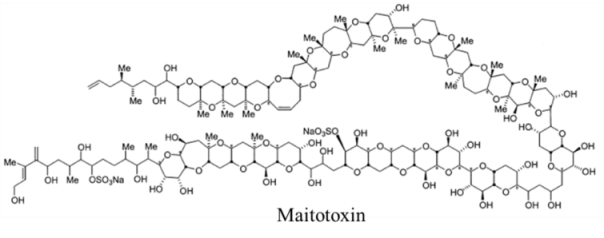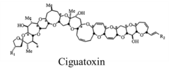 | Polyketide | 32100, n/a | Dinoflagellate | Symptoms similar to NSP | Unknown | Inactivation gating modifier |