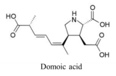 | Amino acid | 3600, 100 | Diatom | ASP | Glutamate receptors | Depolarization via prolonged influx of Ca+ and Na+ |