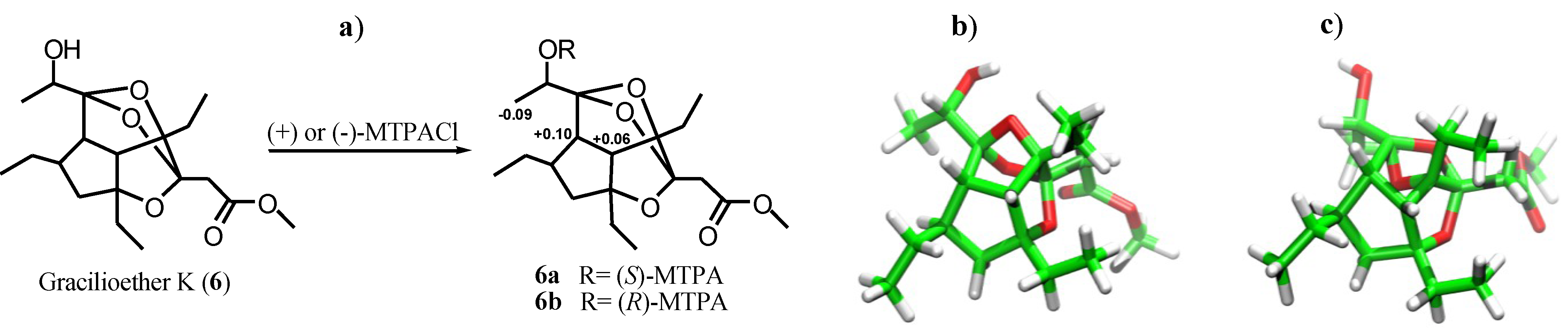 3.4. General Procedure for the Preparation of MTPA Esters (6a) and (6b)
