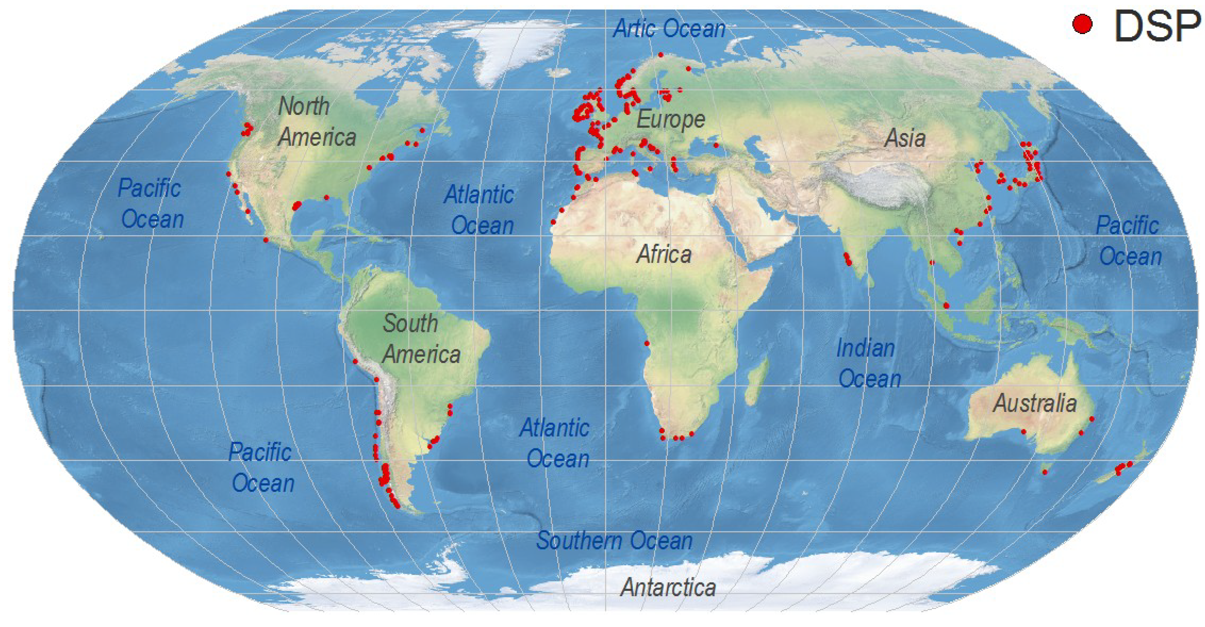 4. Worldwide Distribution of DsT Reports Associated with Dinophysis Occurrence