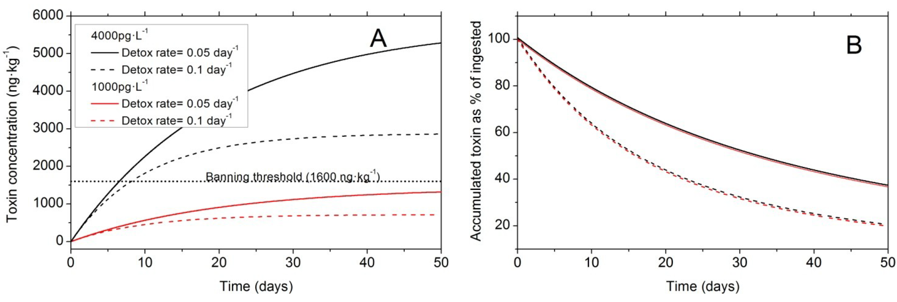 The toxicity observed in bivalve shellfish is not the result of a simple lineal process but of a complex balance from a chain of processes (uptake, biotransformation, elimination, allometric variability) that are species-specific (Section 6).