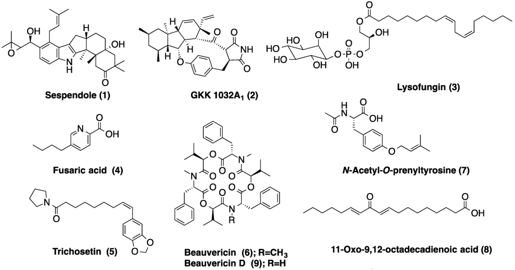 - Coleman, J.J.; Ghosh, S.; Okoli, I.; Mylonakis, E. Antifungal activity of microbial secondary metabolites. PLoS One 2011, 6, e25321. [Google Scholar] [CrossRef] [PubMed]