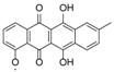 | 8.10 | 513.1398 14 RDBE | C26 H25 O11![]() Atramycin A (12) | 467.13 [M − HCOOH] C25 H23 O9 | 321.08 [−C6 H10 O4] C19 H13 O5 13 RDBE ![]() | |