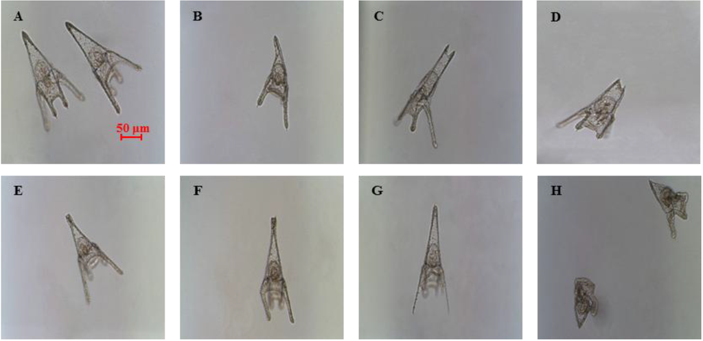 - Romano, G.; Russo, G.L.; Buttino, I.; Ianora, A.; Miralto, A. A marine diatom-derived aldehyde induces apoptosis in copepod and sea urchin embryos. J. Exp. Biol. 2003, 206, 3487–3494. [Google Scholar] [CrossRef]