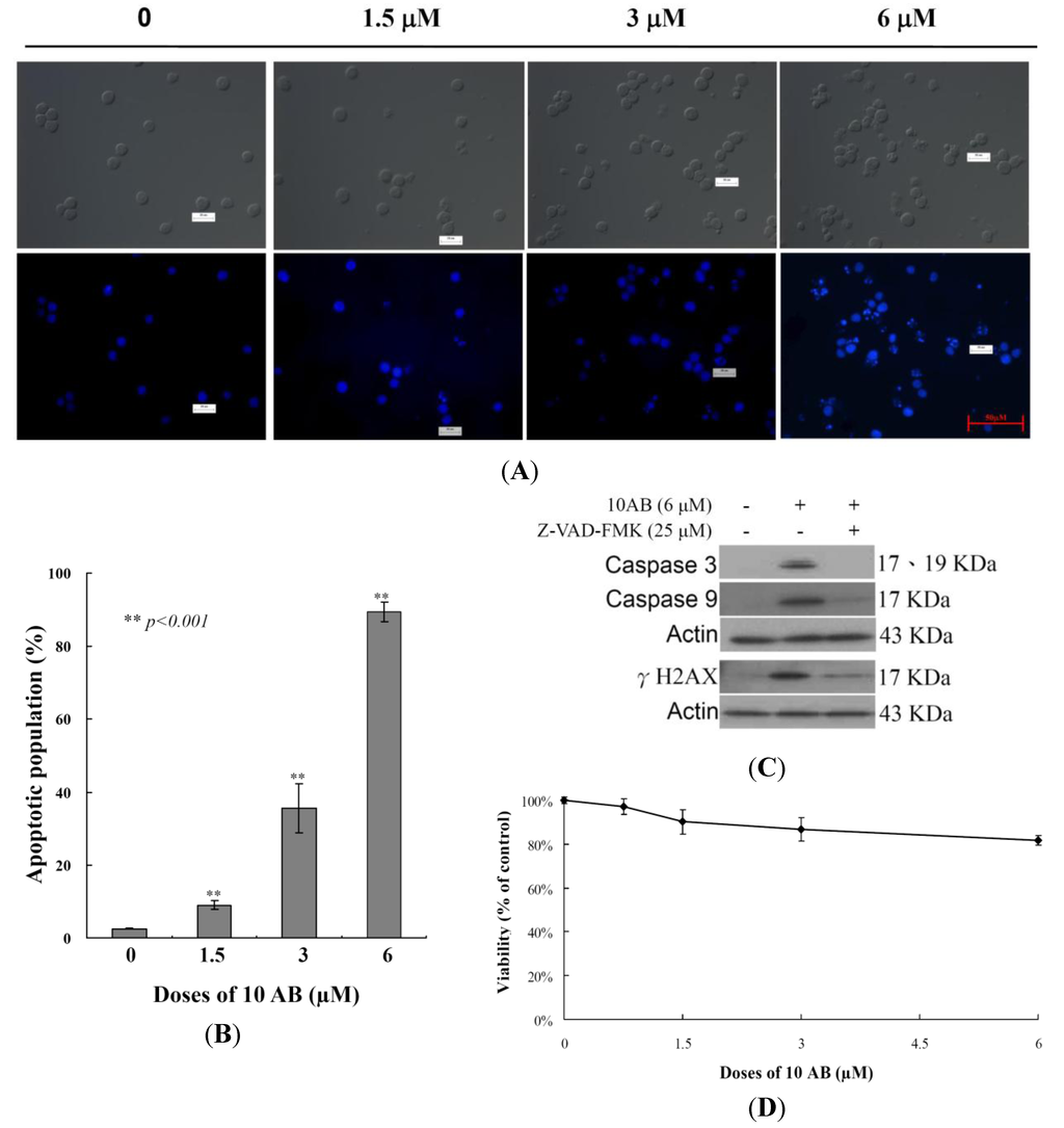 2.1. The Apoptotic Induction Effect of 10AB in HL 60 Cells