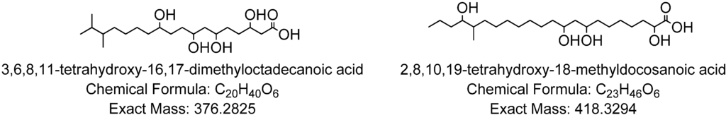 Figure 3. Structure of polyhydroxylated saturated fatty acids found in fractions 221–230.
