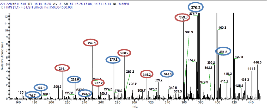 3.6.1. LC-HRESIMS Analysis of Extracts