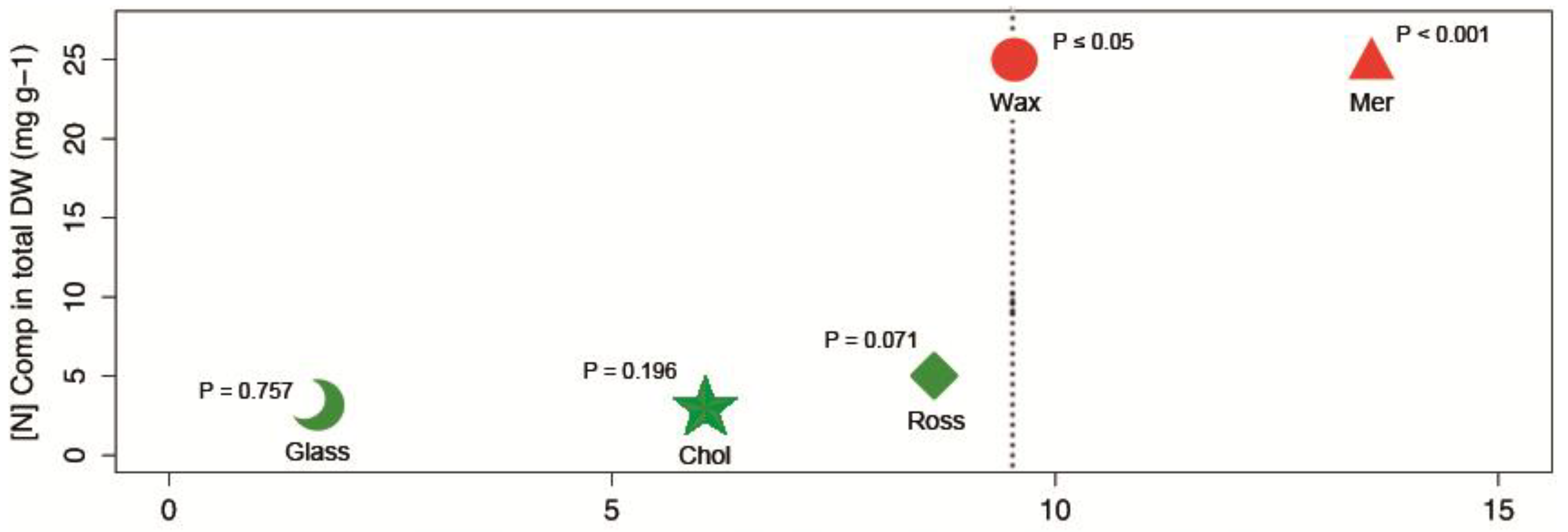 | [N]Comp DWTOTAL | 5.1 mg·g−1 * | |