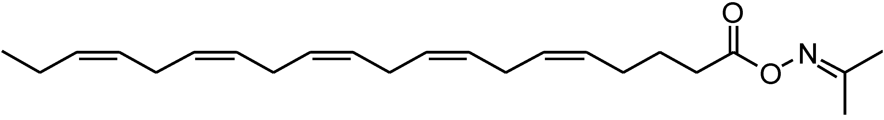 The synthesis of the intended reversed structured DAGEs was more of a challenge. That task required an activated form of EPA and DHA suitable for the enzymatic step to take place fast enough and under mild enough conditions to ensure acyl-migration free transformations. This time the vinyl esters were no longer an option since the polyunsaturated fatty acids do not tolerate the chemical conditions required for preparing such derivatives [41]. Furthermore, most of the commercially available microbial lipases do not accept EPA or DHA and their derivatives as substrates. Both obstacles were successfully overcome by use of EPA and DHA activated as oxime esters on which the immobilized Candida antarctica lipase (CAL-B) acted at sufficient rate under mild enough condition to eliminate any acyl-migration side-reaction such that the 3-MAGE intermediate adducts were obtained regiopure and in excellent yields (89%–93%). The details have been reported in a recent publication [41]. Figure 4 shows the chemical structure of an acetoxime ester of EPA.