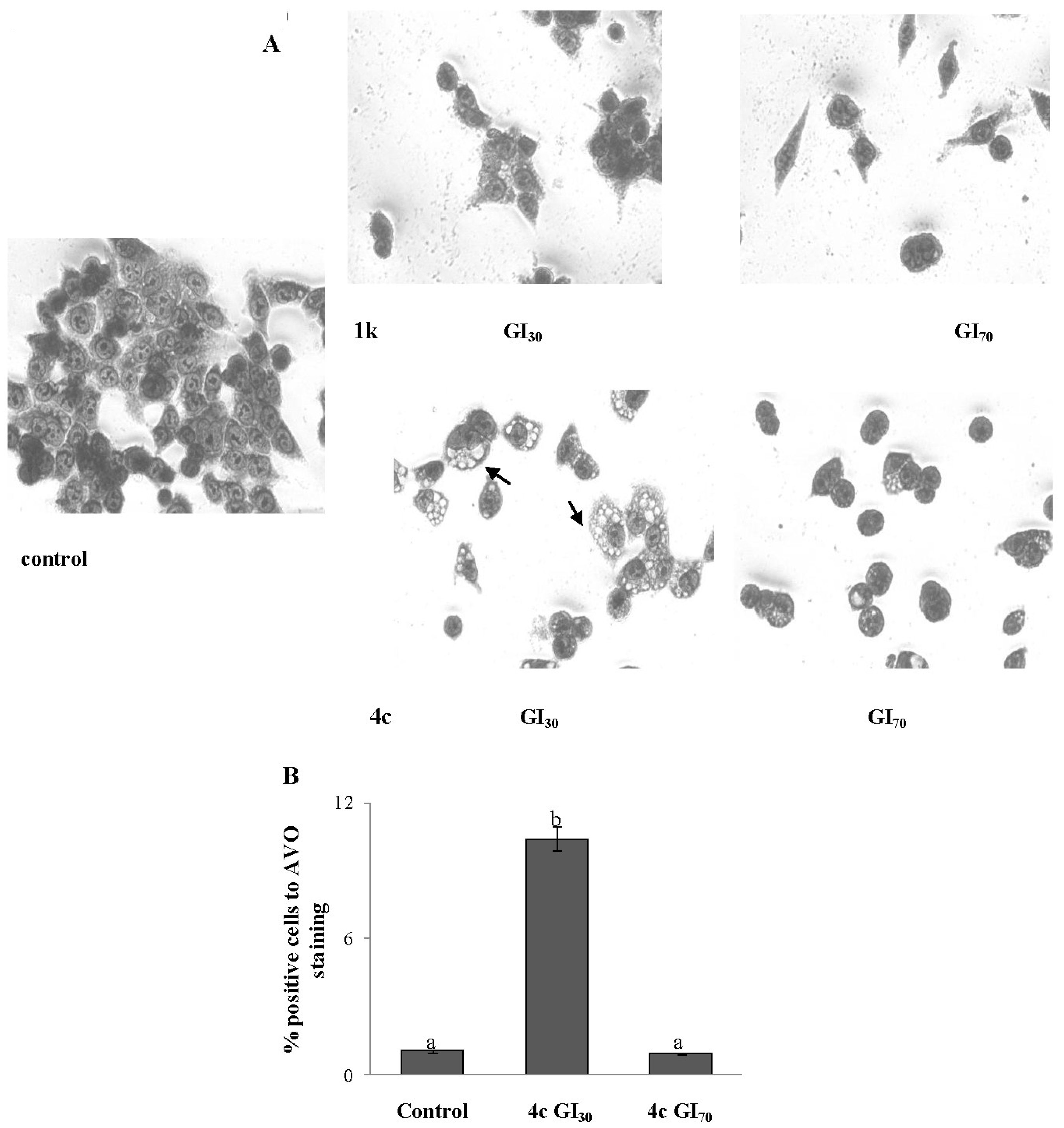 Moreover for compound 4c positive TGI and LC50 values were observed with respect to a good number of cell lines (98% and 81%, respectively; data not shown).