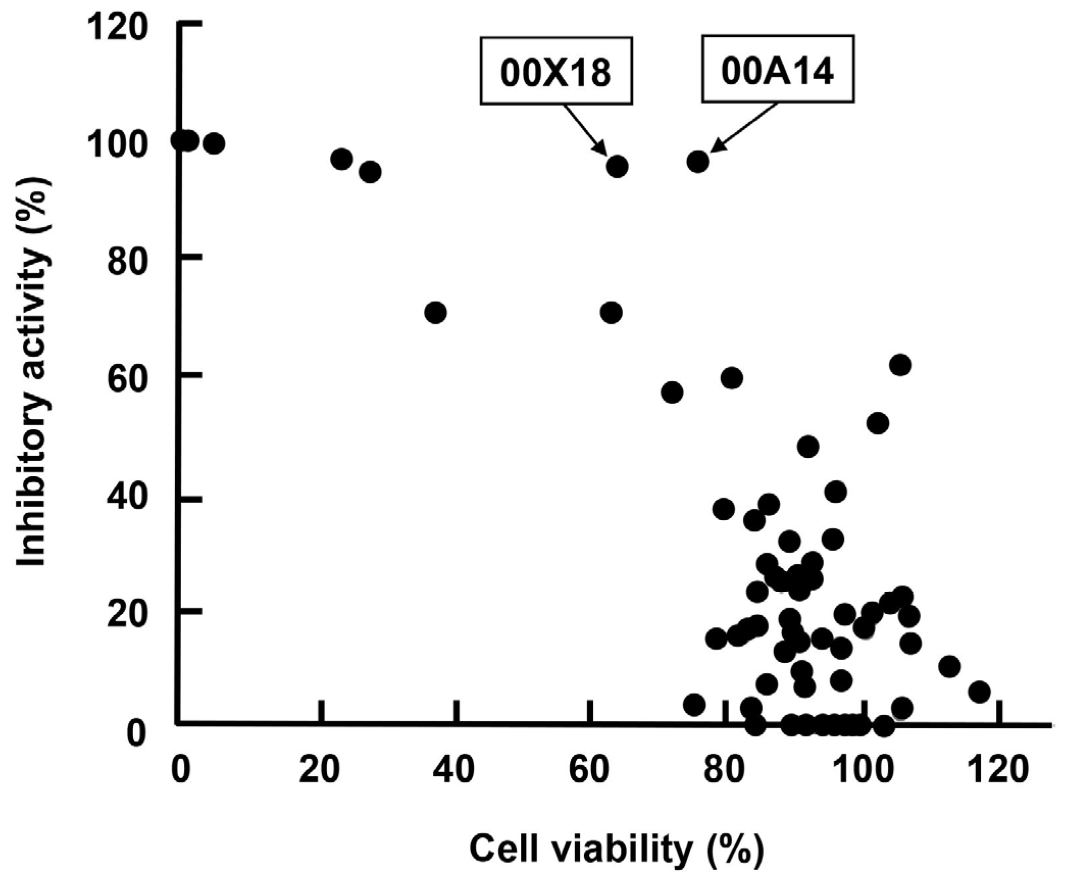| Sample No. | Sample Code Name | Specimen | Phylum | Inhibitory Activity (%) | Cell Viability (% of Control) | Collection Site |