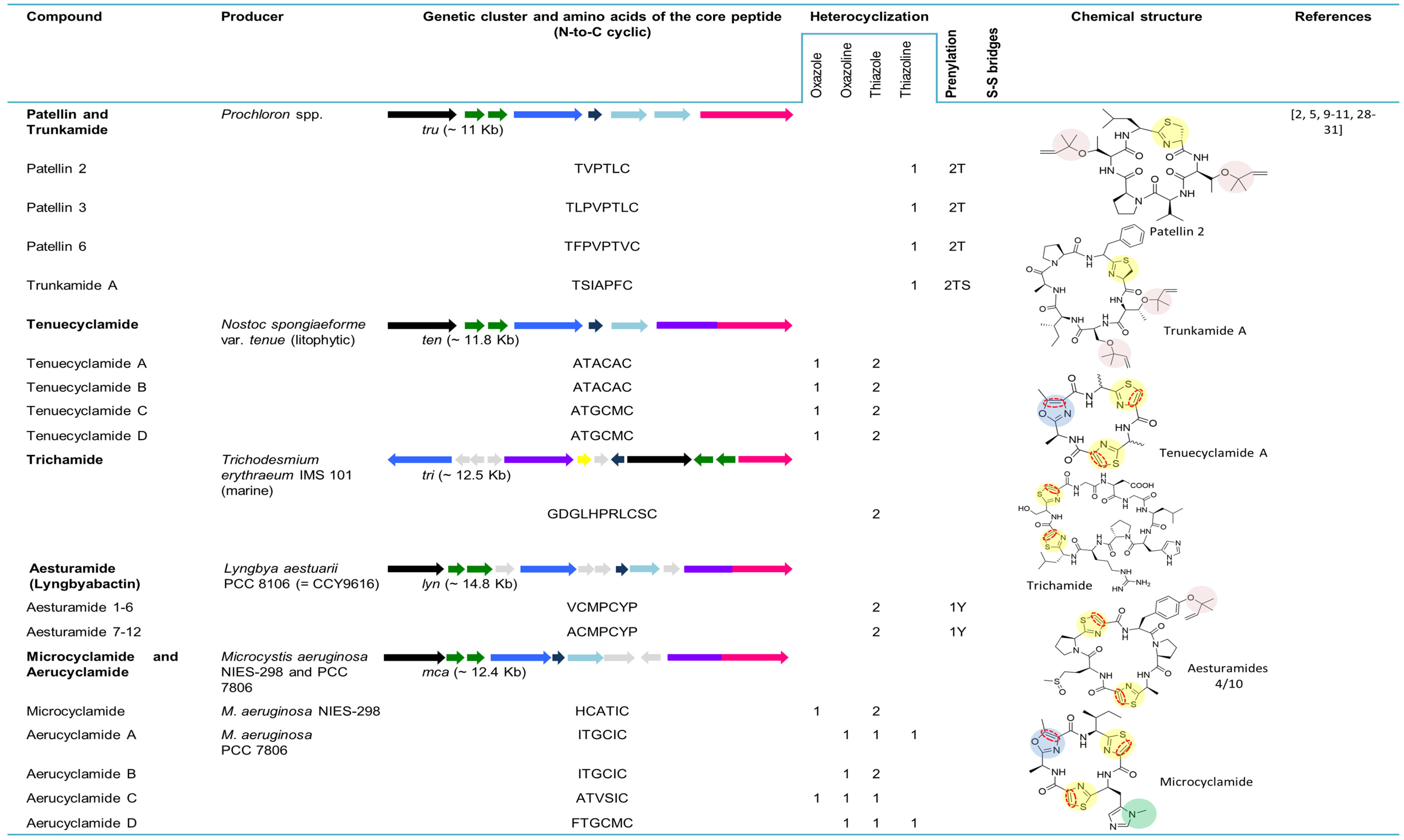 5.6. Microcyclamides and Aerucyclamides