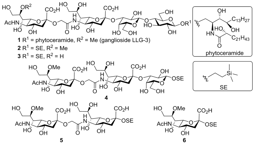 Structures of ganglioside LLG-3 and its analogues synthesized in this study.