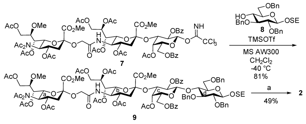 - Shimizu, H.; Iwayama, Y.; Imamura, A.; Ando, H.; Ishida, H.; Kiso, M. Synthesis of the disialic acid-embedded glycan part of ganglioside HPG-1. Biosci. Biotechnol. Biochem. 2011, 75, 2079–2082. [Google Scholar] [CrossRef] [PubMed][Green Version]