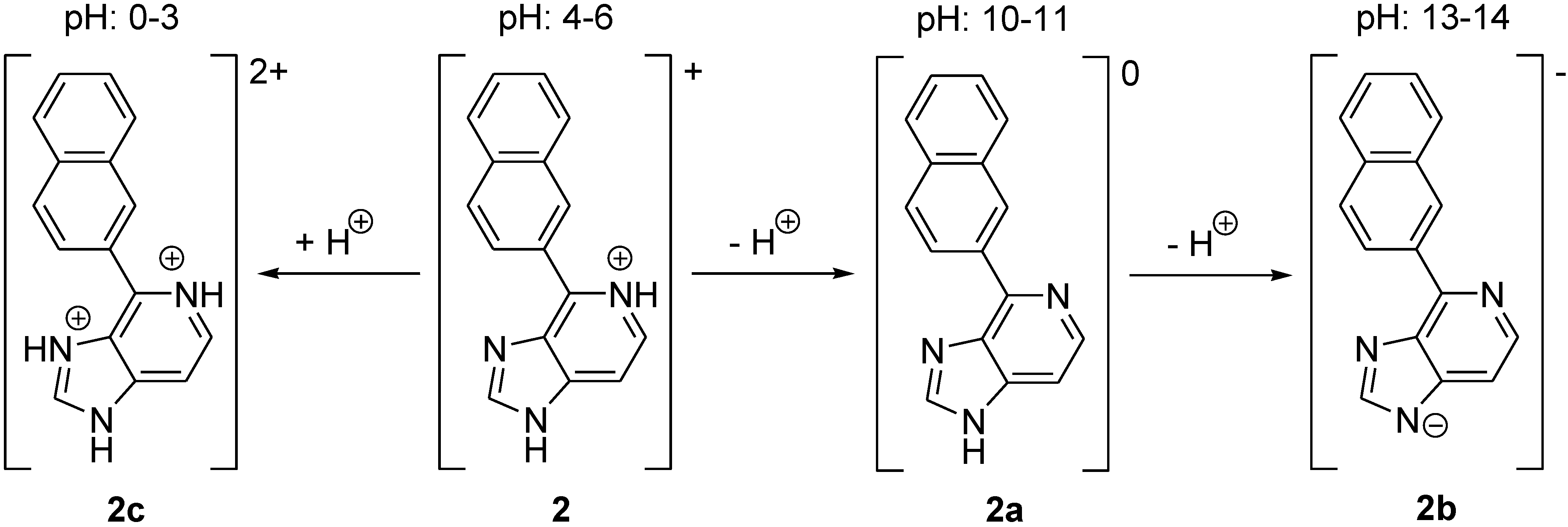 Deprotonation and protonation of 4-(naphthalene-2-yl)-1H-imidazo[4,5-c]pyridine (LysoGlow84).