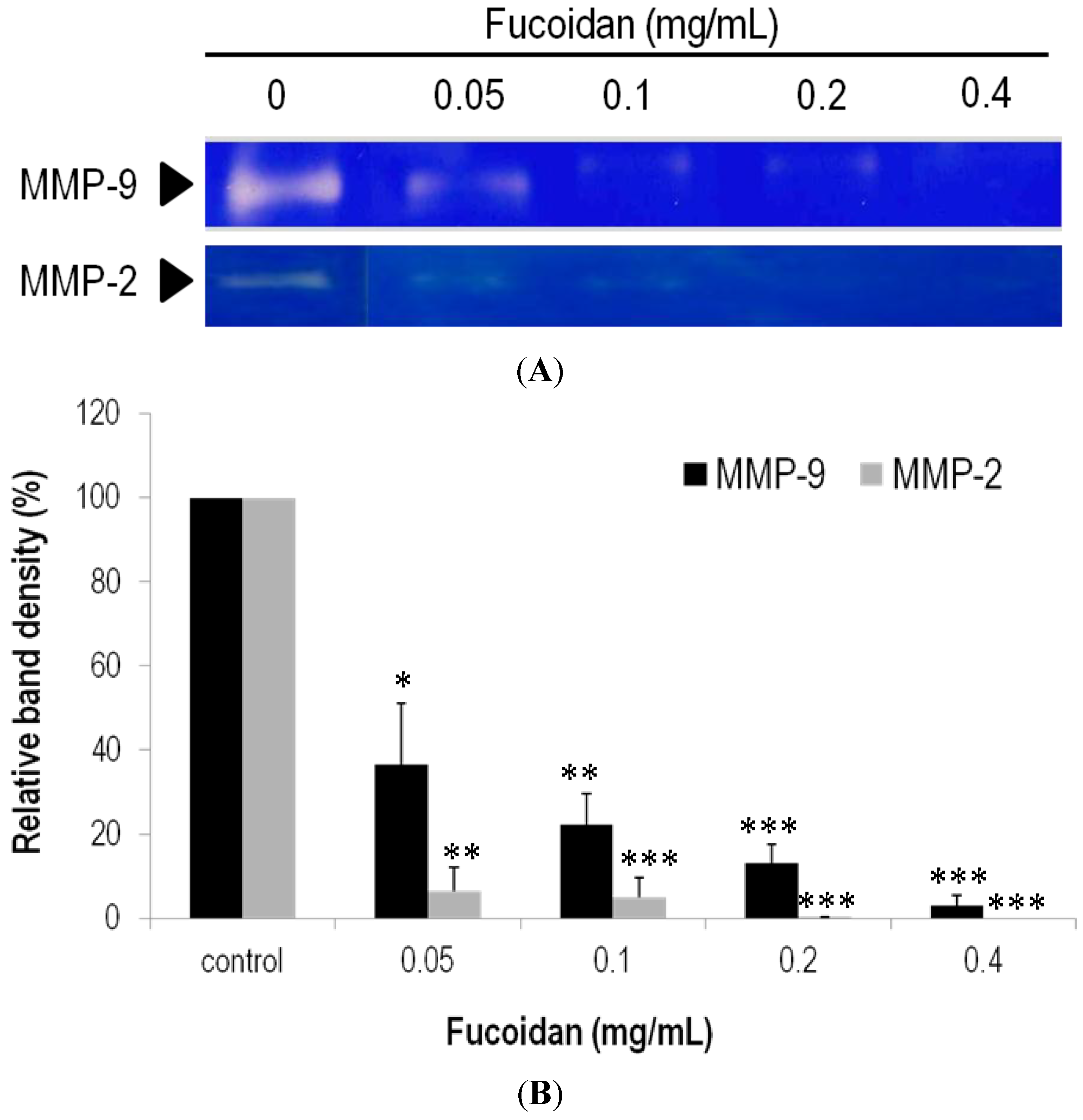 2.6. Effects of Fucoidan on Expression and Activity of MMPs