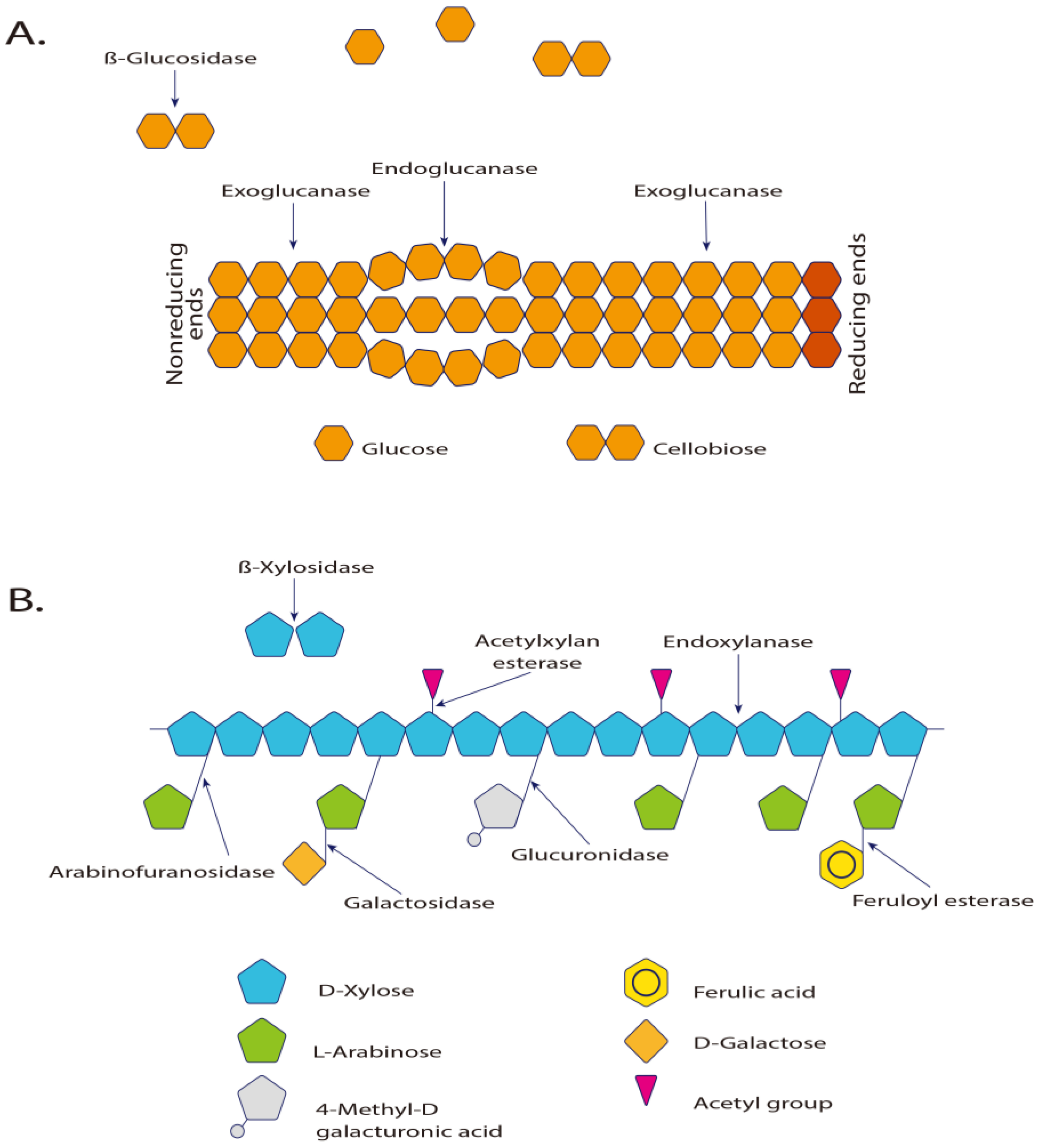 - Wilson, D.B. Aerobic microbial cellulase systems. In Biomass Recalcitrance: Deconstructing the Plant Cell Wall for Bioenergy; Himmel, M.E., Ed.; Blackwell Publishing: Oxford, UK, 2008; pp. 374–392. [Google Scholar]