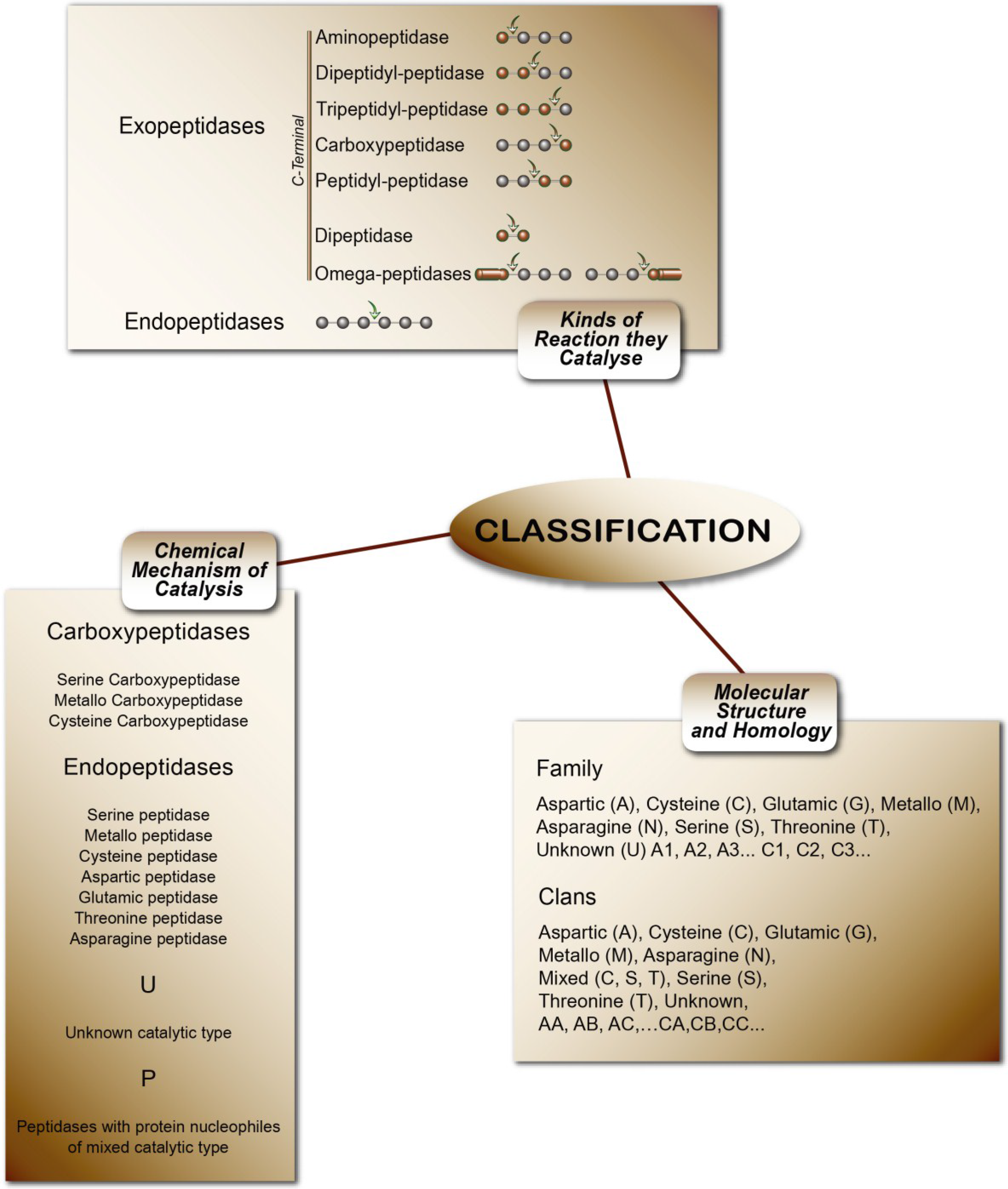 | Enzyme | Classification | Cleavage | Product | ||