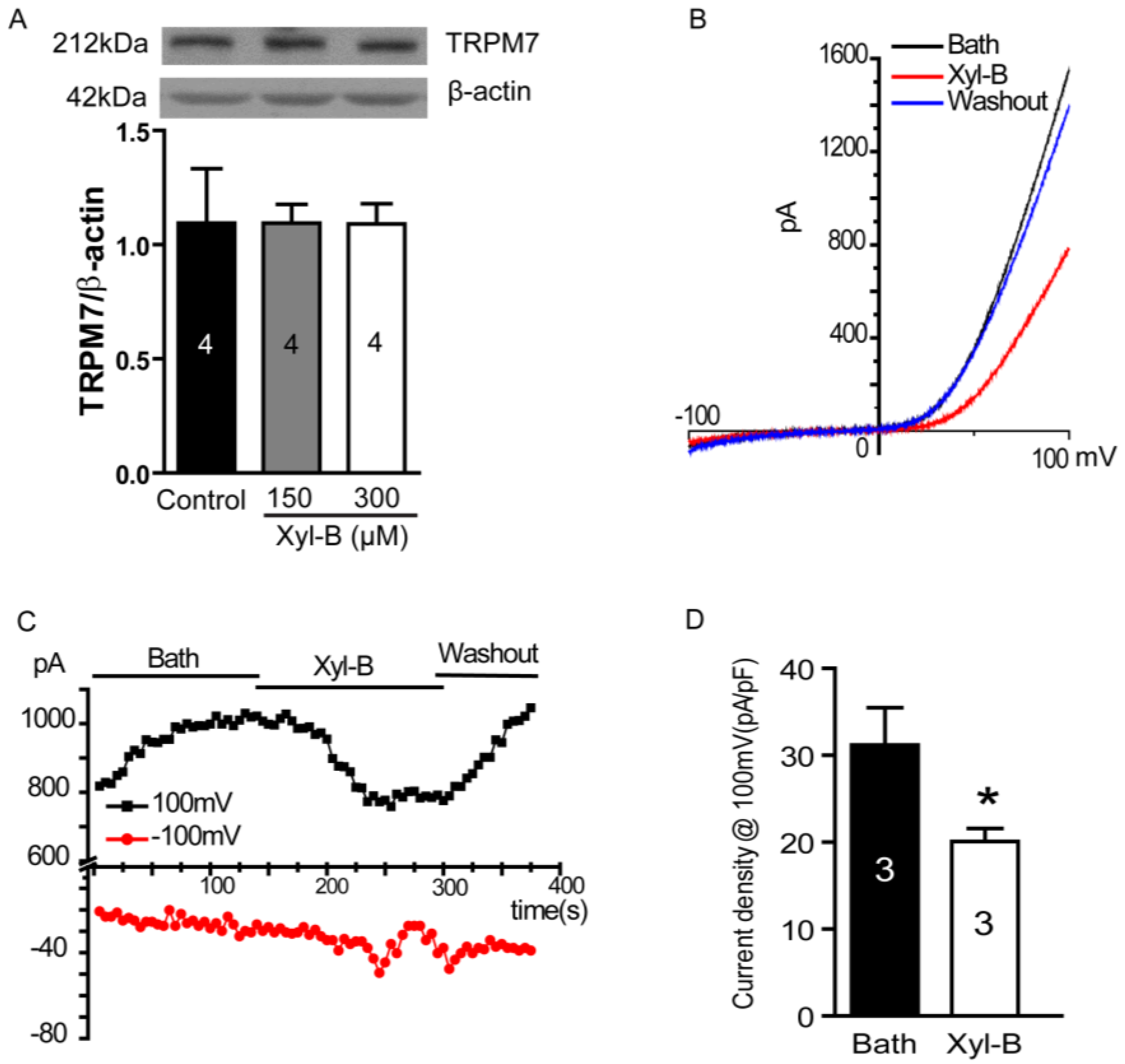 2.5. Xyloketal B Blocks the TRPM7 Current