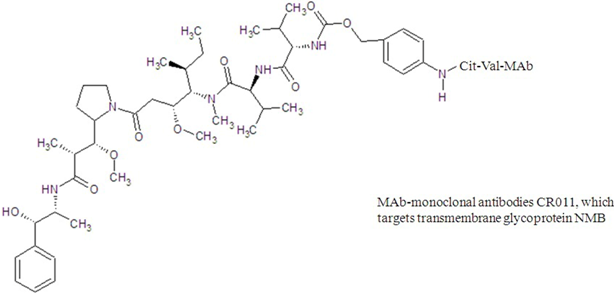 | glembatumumab vedotin | derivatives | dolastatin 10 from Dolabella auricularia | cancer treatment | phase I/II clinical study |