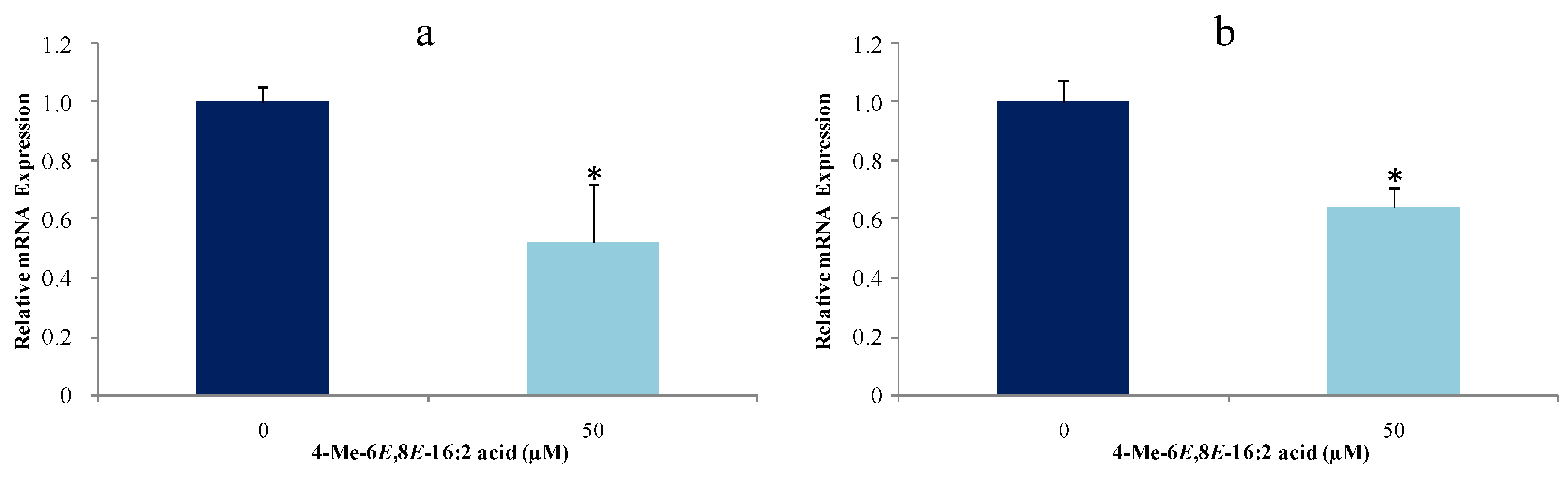 2.4. 4-Me-6E,8E-Hexadecadienoic Acid Reduces Gene Expression of Lipogenic Enzymes