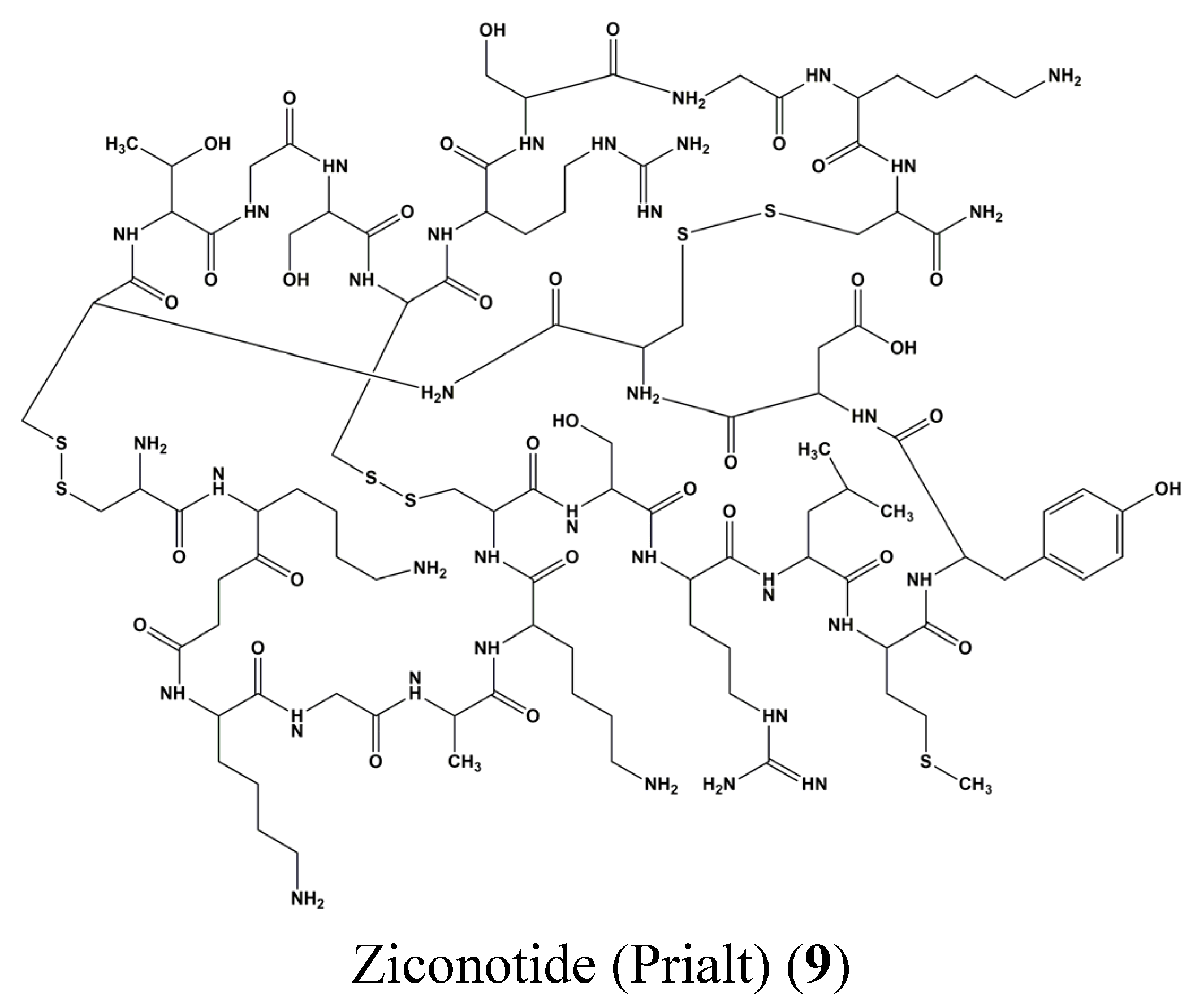 Chemical structure of Ziconotide (Prialt) (9).