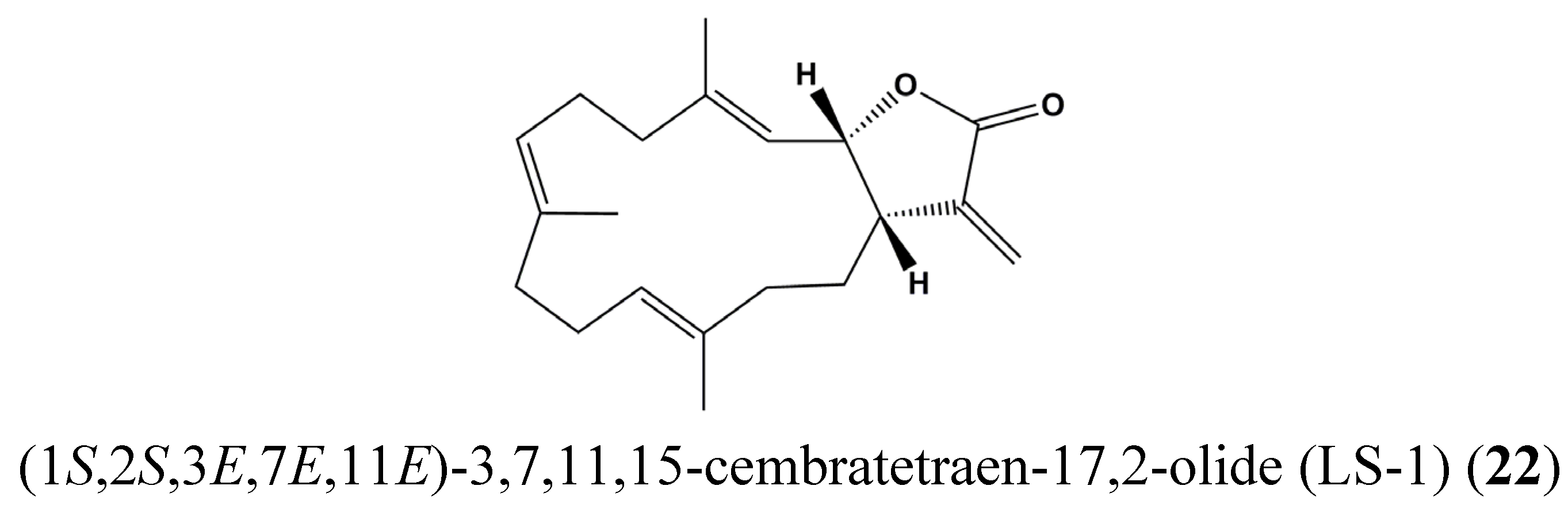 Chemical structure of (1S,2S,3E,7E,11E)-3,7,11,15-cembratetraen-17,2-olide (LS-1) (22).